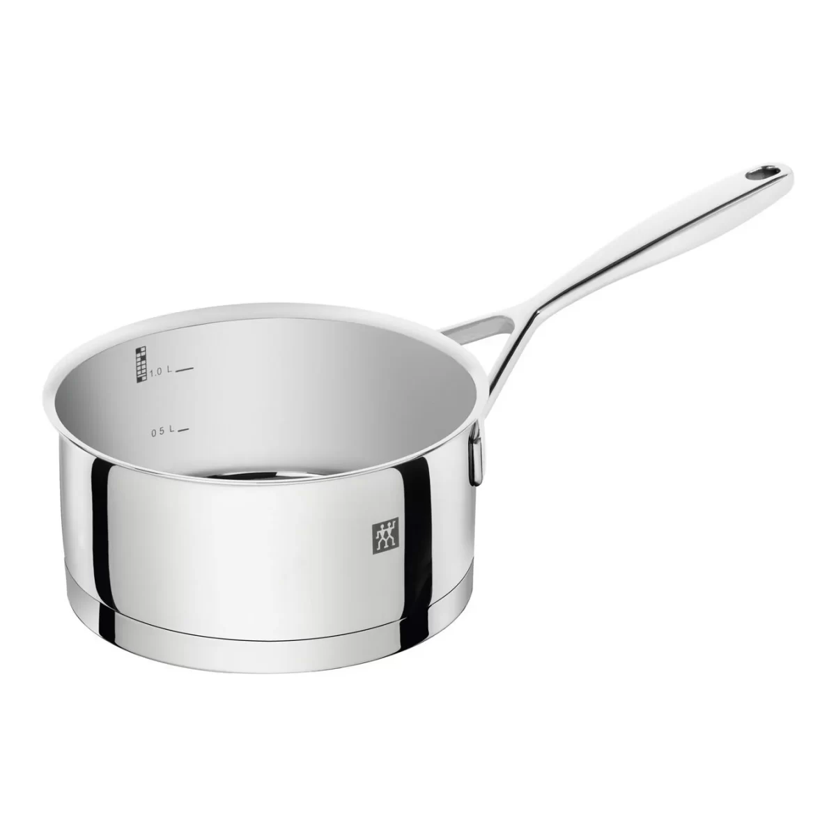 Questo set di cinque pezzi ZWILLING ha tutte le pentole di cui potrete aver bisogno in cucina, tra cui una casseruola da 20 cm, tre pentole (16 cm, 20 cm e 24 cm) e una casseruola con manico da 16 cm. La casseruola è l’ideale per arrostire, cuocere a fuoco lento e stufare gli alimenti, mentre le pentole possono essere usate per cuocere contorni come patate, pasta o verdure fresche e la casseruola con manico per preparare deliziose salse a completare qualsiasi pasto. Questo set di pentole è composto dalle pentole della collezione ZWILLING® Passion, note per la struttura di alta qualità, per lo squisito design e per la raffinata superficie lucida. Il nucleo in alluminio del fondo delle pentole favorisce la prolungata distribuzione del calore, tenendo caldi gli alimenti. Il coperchio ad alta tenuta vi permette di cucinare e al contempo risparmiare energia e acqua. Ogni pentola è inoltre dotata di una scala graduata integrata, utile per dosare i liquidi. Questo set di cinque pentole ZWILLING è adatto ai piani cottura a gas ed elettrici, oltre che ai piani a induzione. È inoltre facile da curare e lavabile in lavastoviglie dopo l’uso. Ogni pentola è resa maneggevole dalle maniglie ergonomiche in acciaio inossidabile. Viziate amici e parenti con i loro piatti preferiti con questo set di pentole ZWILLING.